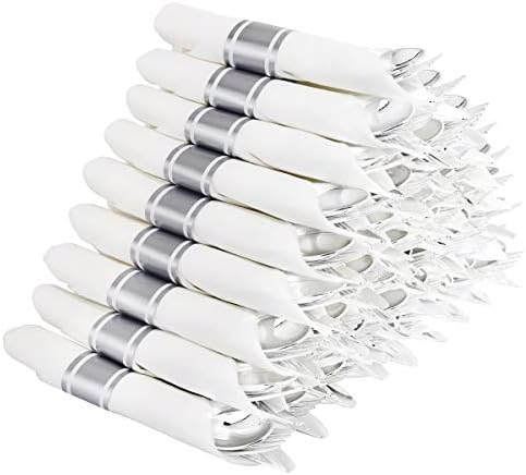 2. Supernal 60 Pack Silver Plastic Silverware,Pre Rolled Silverware,Premium Disposable Silver Cutlery,Suit for Wedding,Catering Event,Birthday,Party